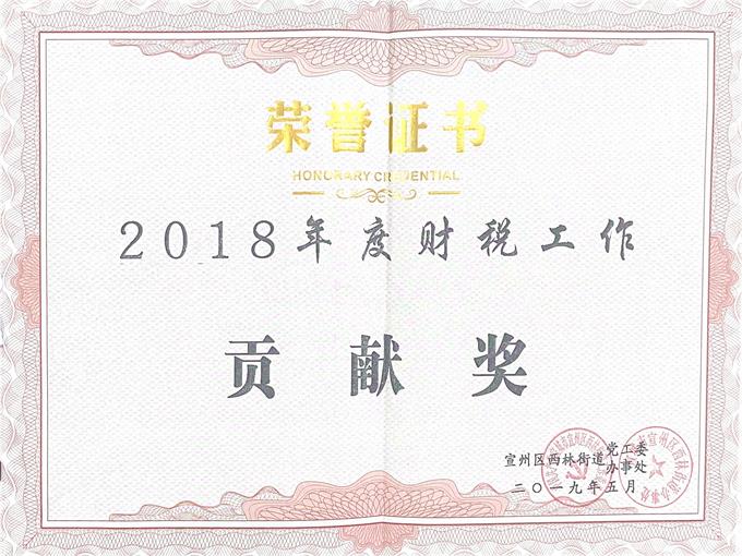 20日上午,公司總經理付新凱參加了由宣城市宣州區西林街道黨工委、西林街道辦事處組織舉辦的“2018年度為西林街道經濟社會發展等工作做出貢獻的先進集體表彰大會”,我公司榮獲“2018年度財稅工作貢獻獎”。