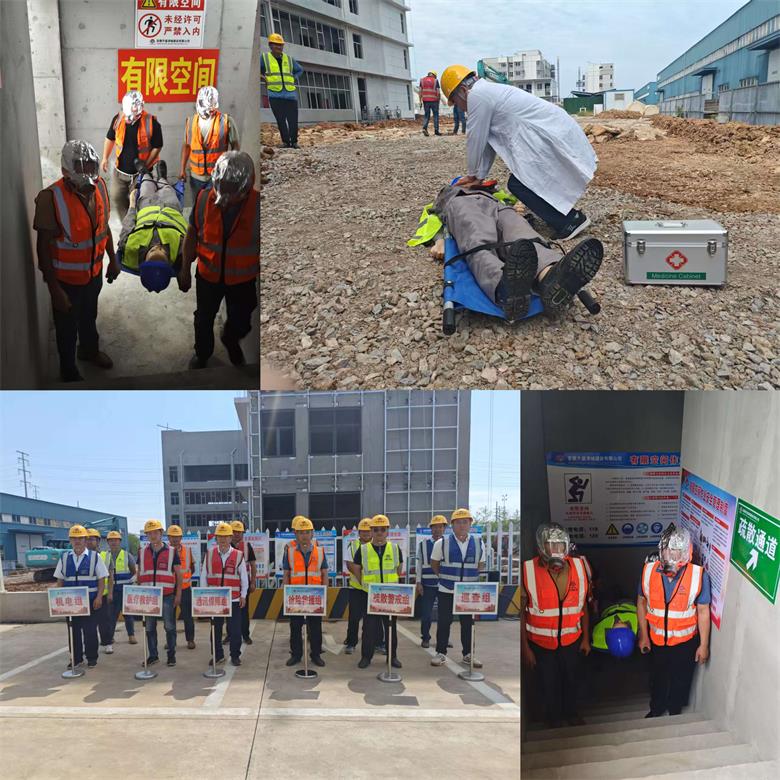 會后,在項目部施工現(xiàn)場進行了受限空間應(yīng)急演練。